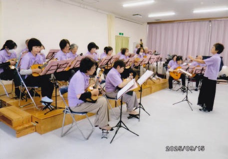 学校前自治会連合会長寿会訪問演奏 2025年9月15日(月・祝)10:30~11:30 学校前自治会館 今回は、女性部員の吉川さんが初めて指揮と進行役を務めました。 初々しく、観客の皆さんからは大好評でした。 演奏曲目 ①丘を越えて ②赤いスイートピー ③ザ・ピーナッツメドレー ④上を向いて歩こう ⑤青い山脈 ⑥北の旅人 ⑦北上夜曲 ⑧舟歌 ⑨いつでも夢を アンコール ふるさと 指揮 古川勇子 |